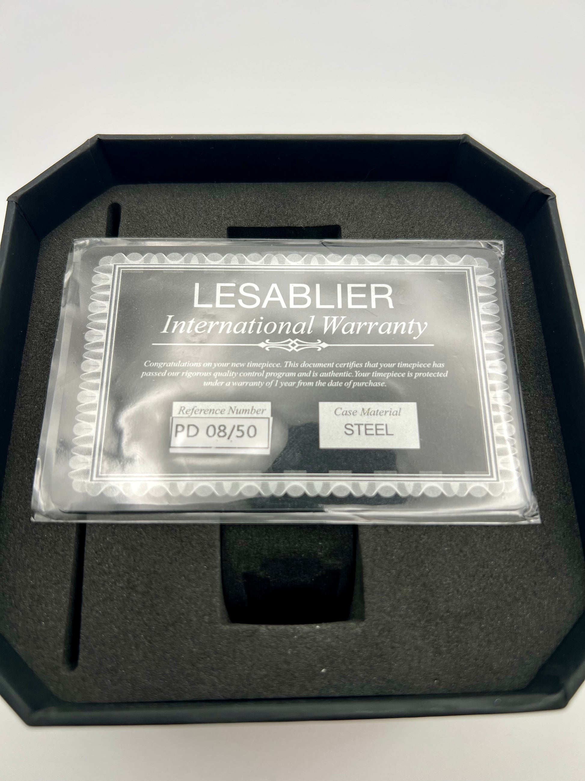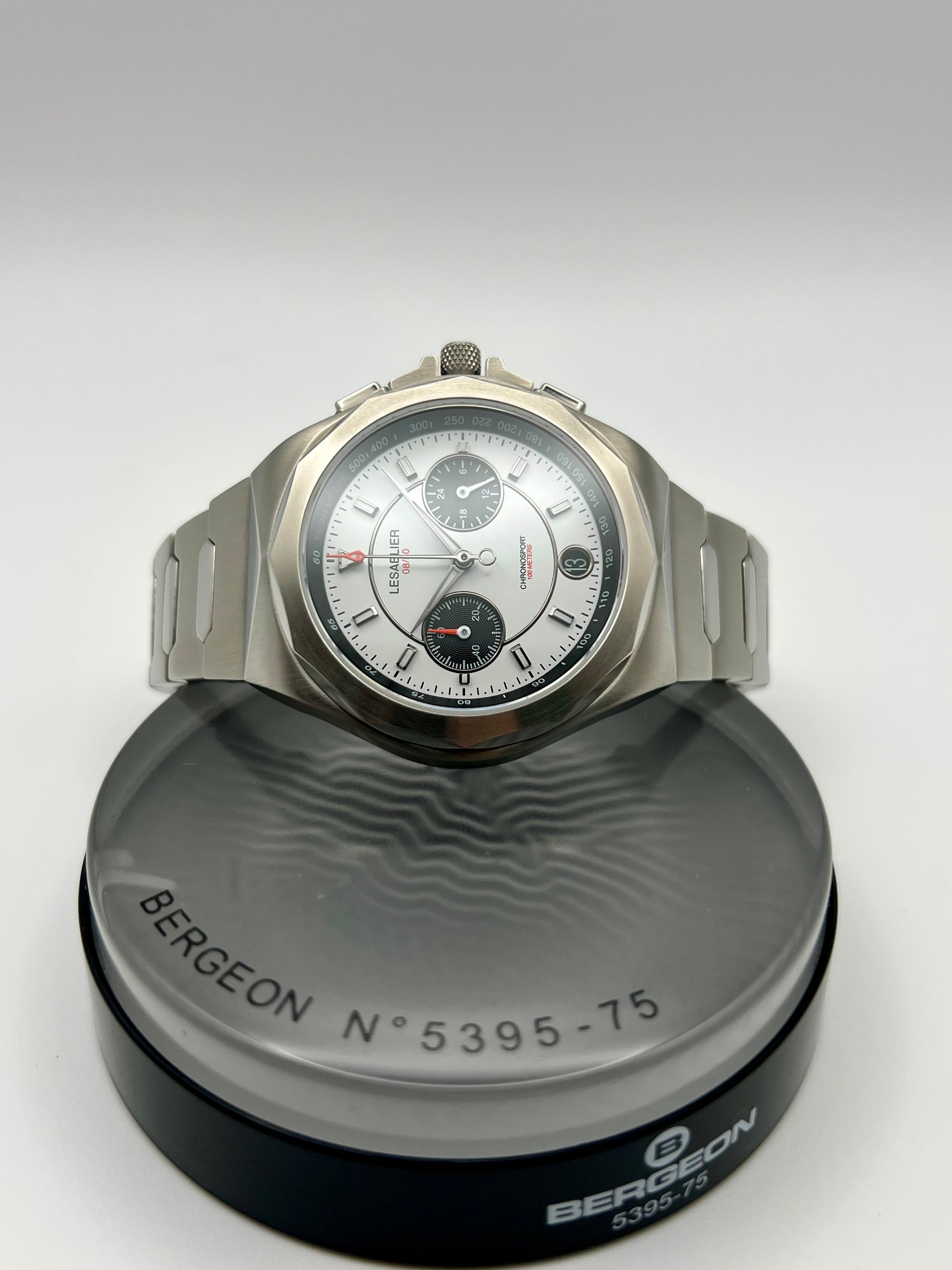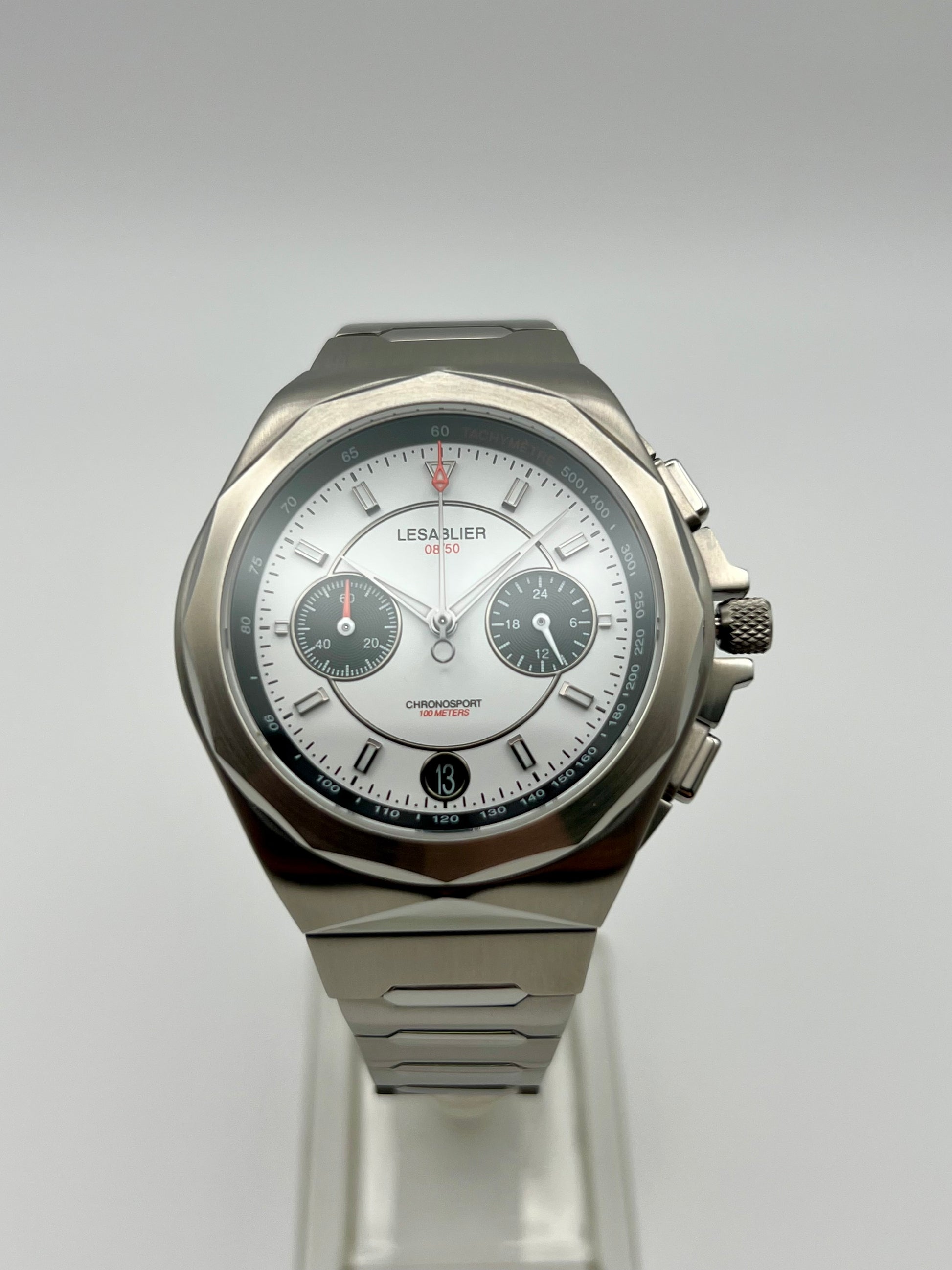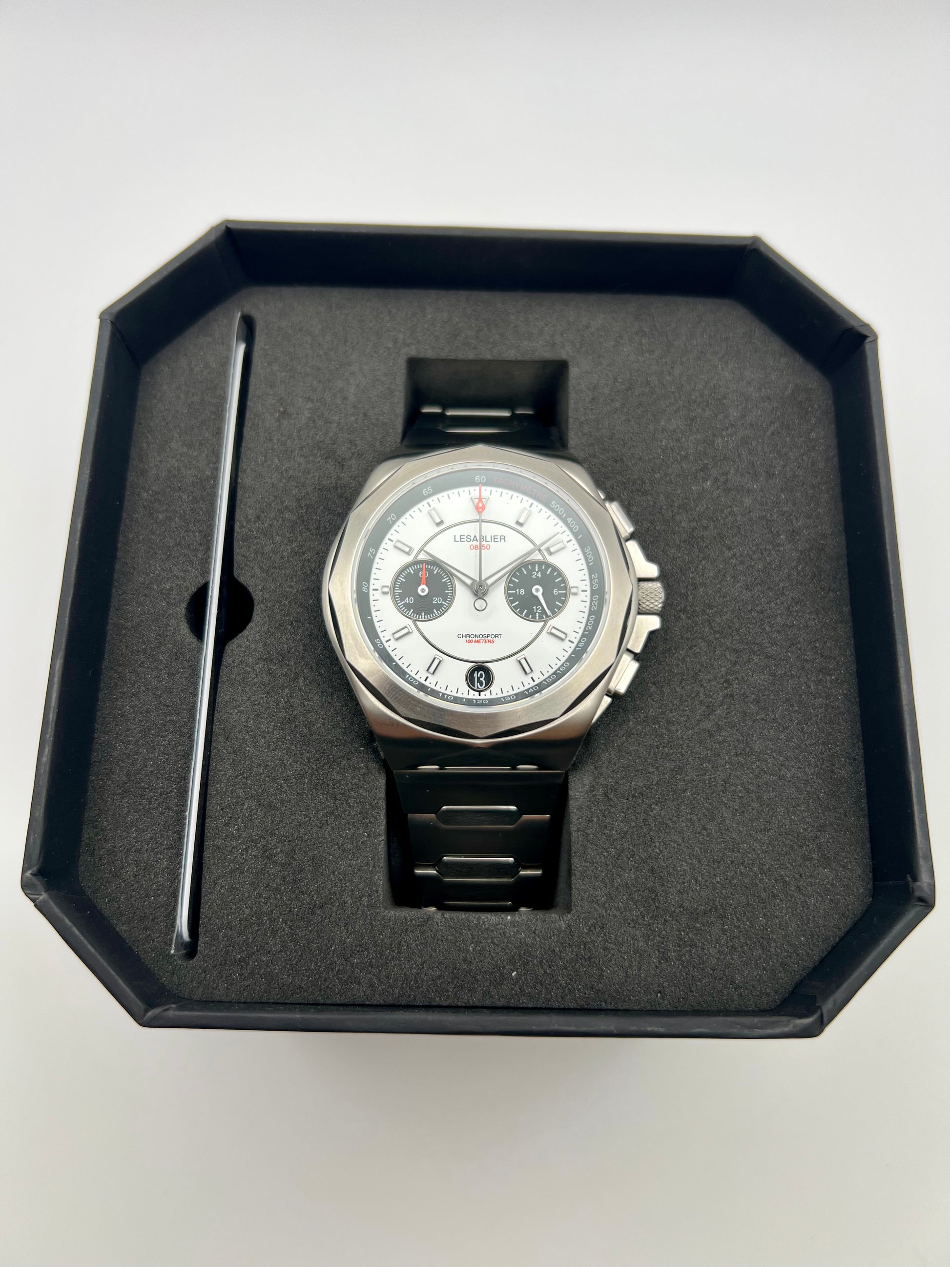 Clean and bold, the Lesablier Chronosport Panda offers a fresh take on the classic chronograph with a design that nods to vintage motorsport style. The crisp white dial is layered with recessed subdials and applied indices that catch the light, all surrounded by a brushed and polished case that gives it real presence on the wrist.