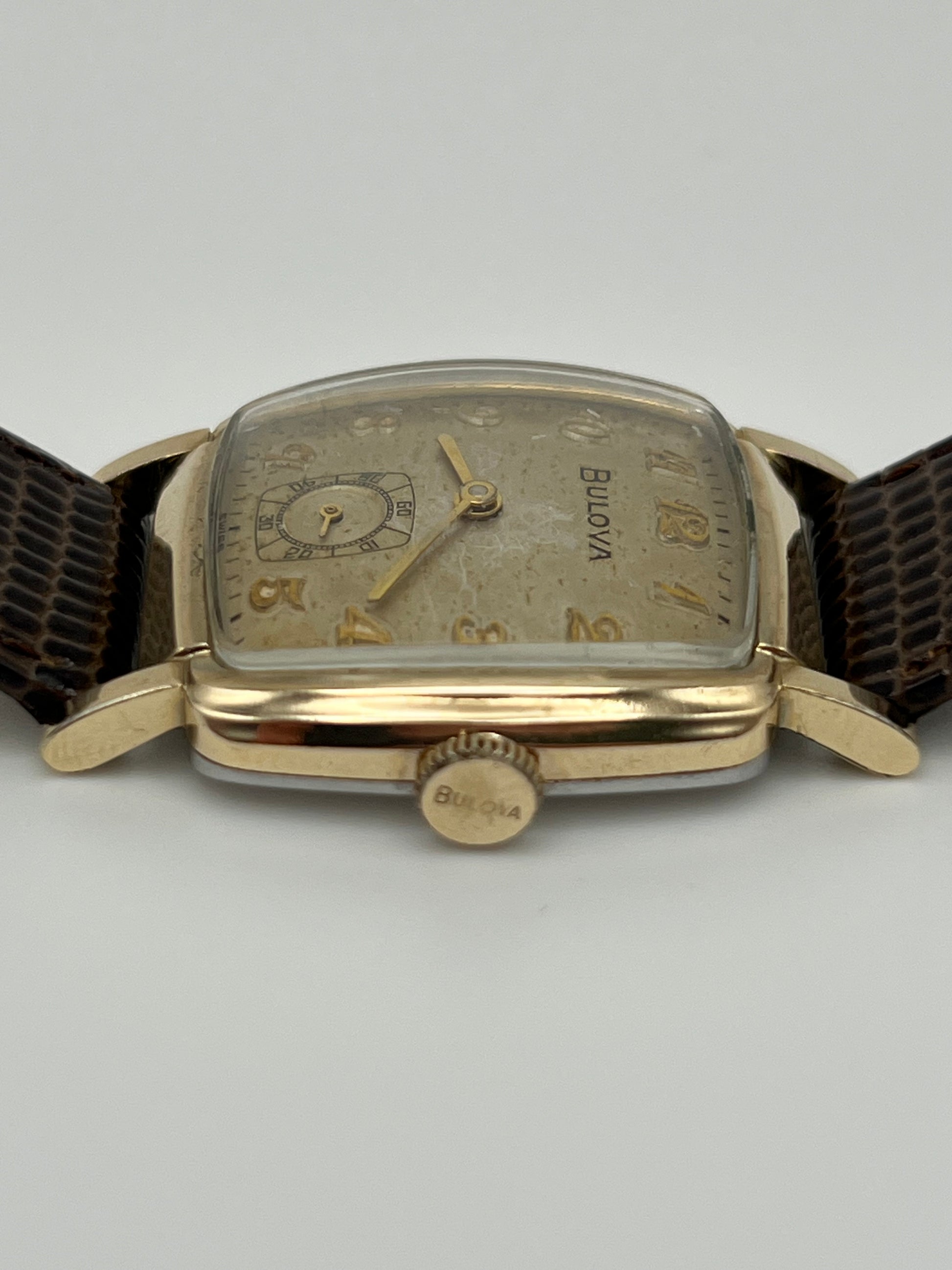 A stunning example of early watchmaking artistry, this Bulova from 1956 is a testament to mid-century design and precision. With all-original components preserved for authenticity, it stands as a timeless reminder of a bygone era. Despite its age, it maintains remarkable timekeeping accuracy of +/- 20 seconds per day, showcasing the enduring quality of its craftsmanship.