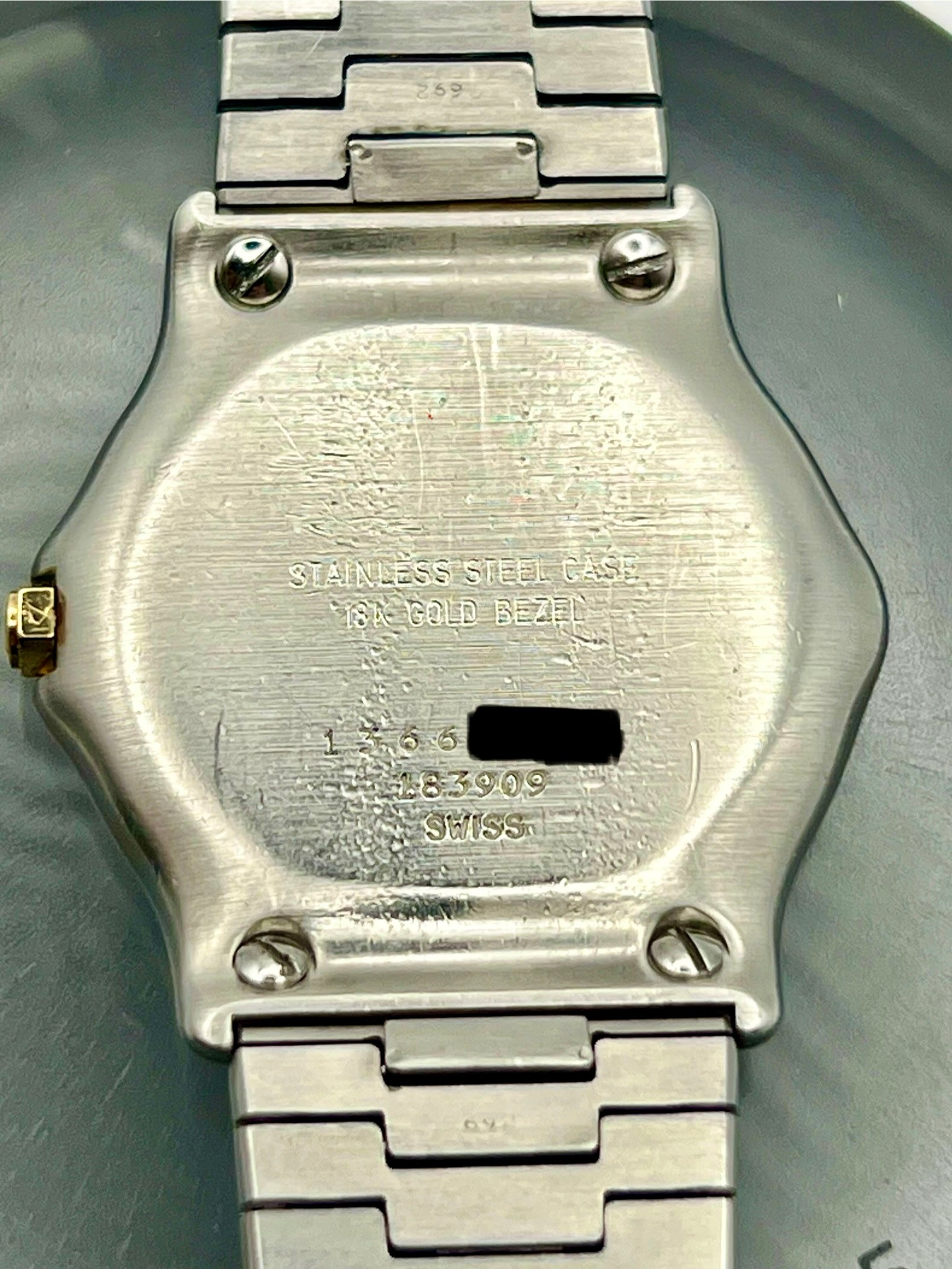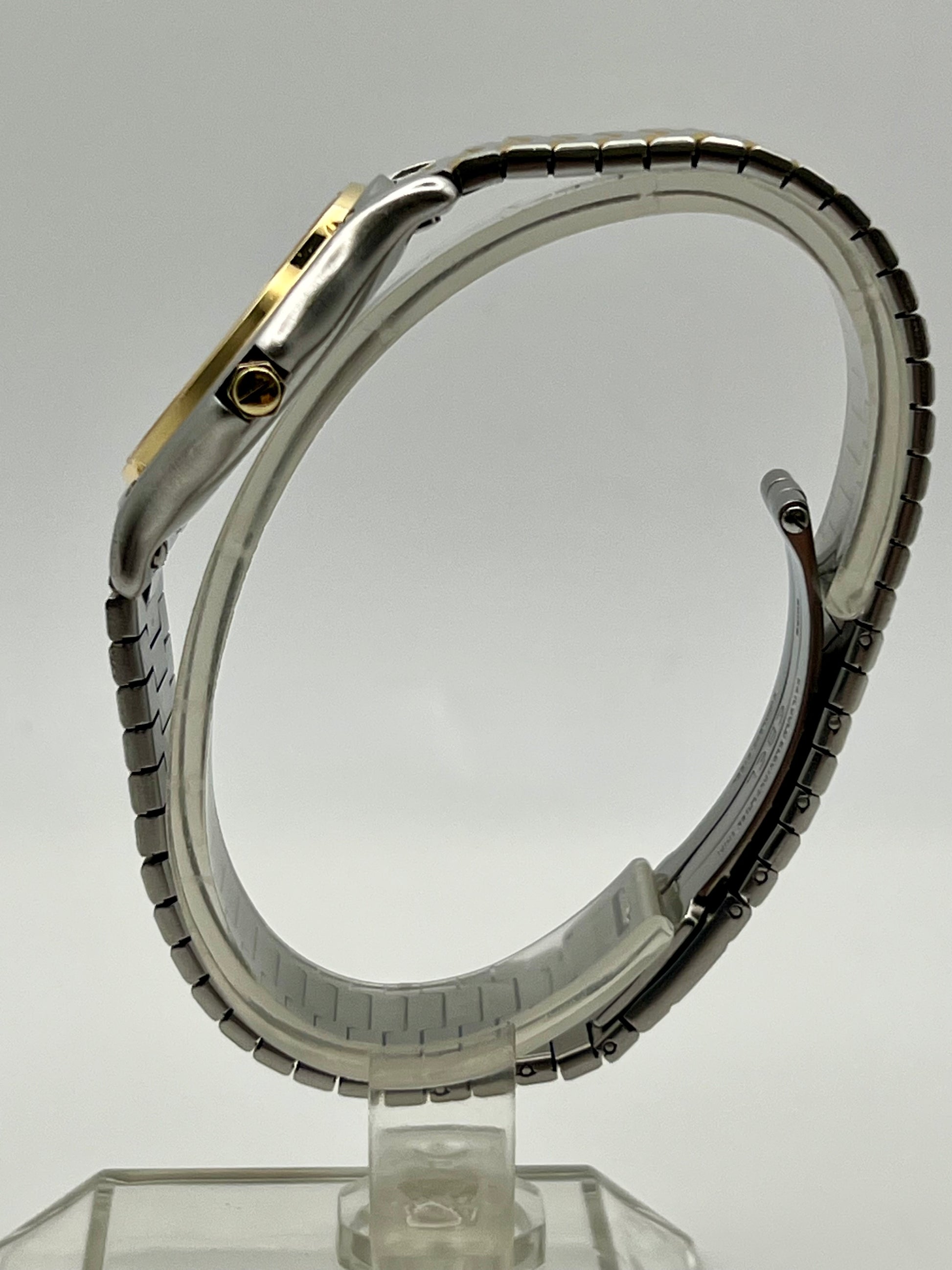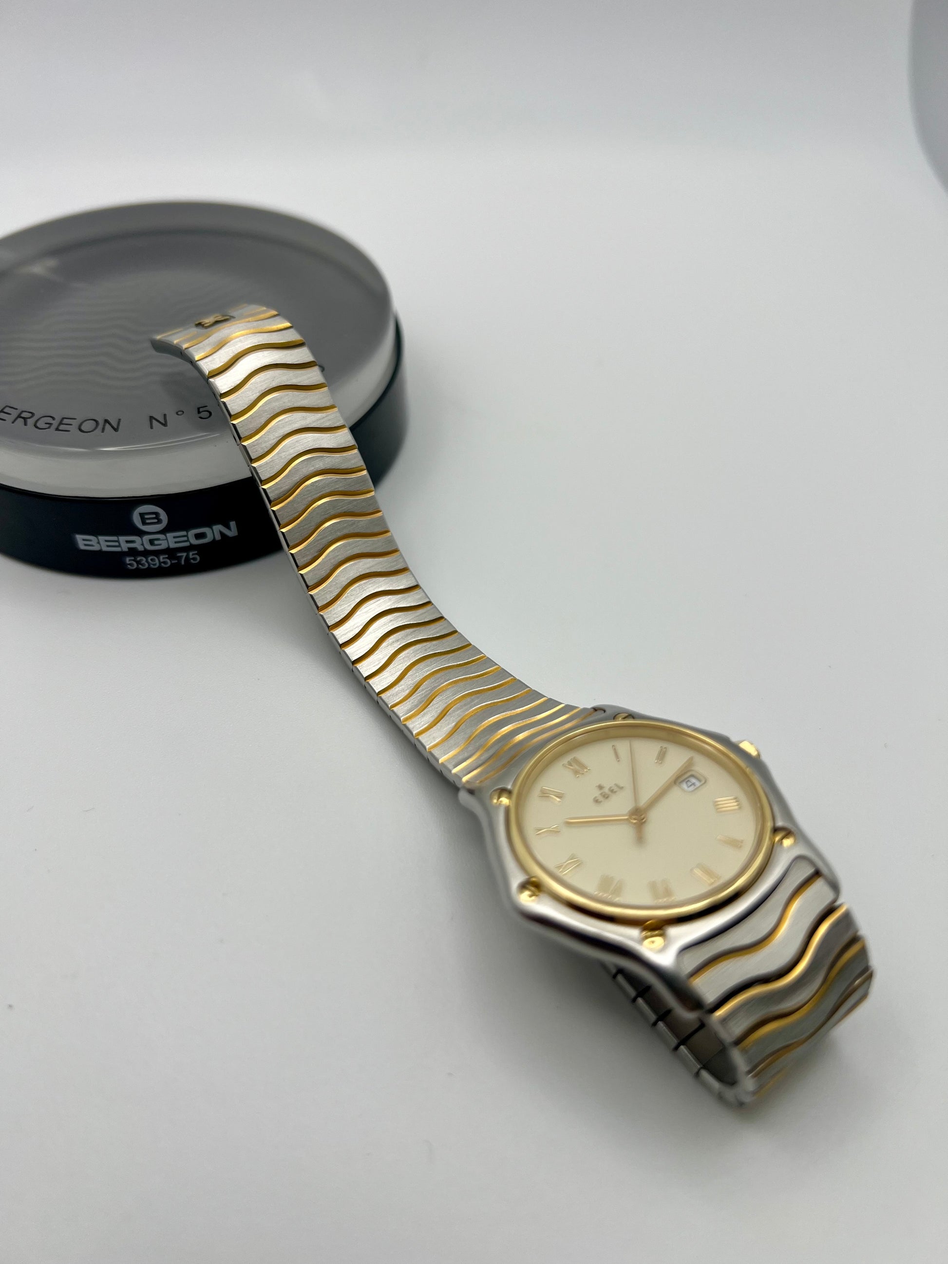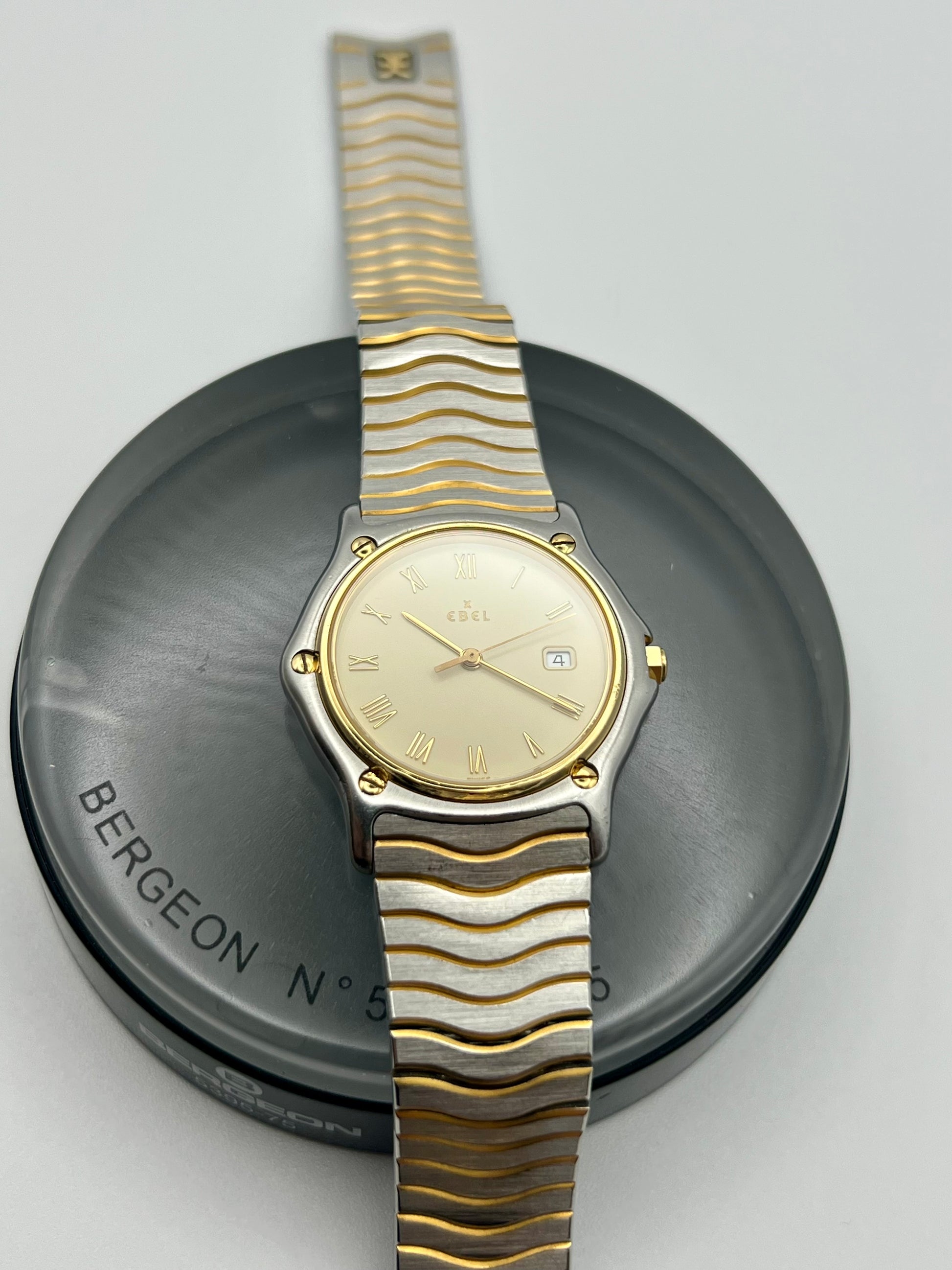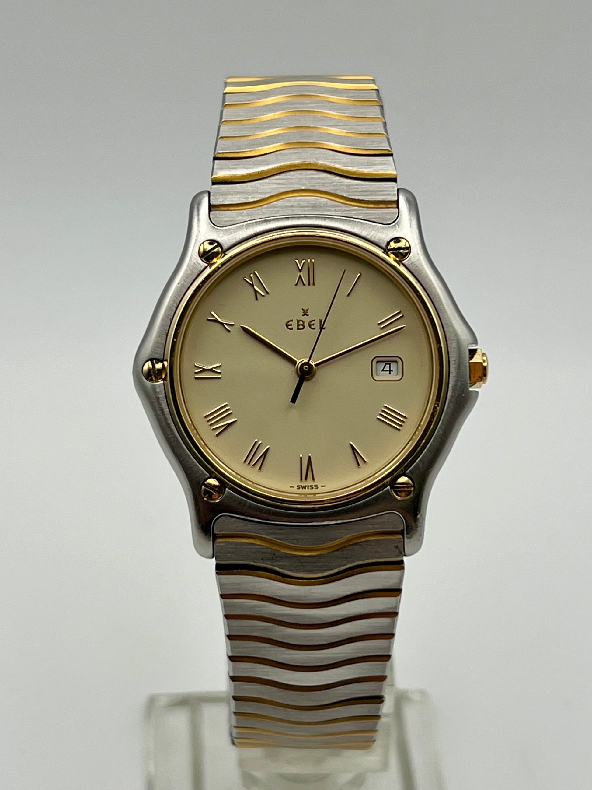 A refined blend of sport and elegance, this Ebel 183909 pairs stainless steel with solid 18K yellow gold throughout the bezel and five solid gold bezel screws, making it as much an investment as it is a watch. It features a sapphire crystal, quick set date, and the high grade Ebel Caliber 83 quartz movement developed with Frederic Piguet and Cartier, fitted with 9 jewels for lasting precision. Fully serviced and in excellent condition, this is a standout example of classic Swiss design and enduring value.