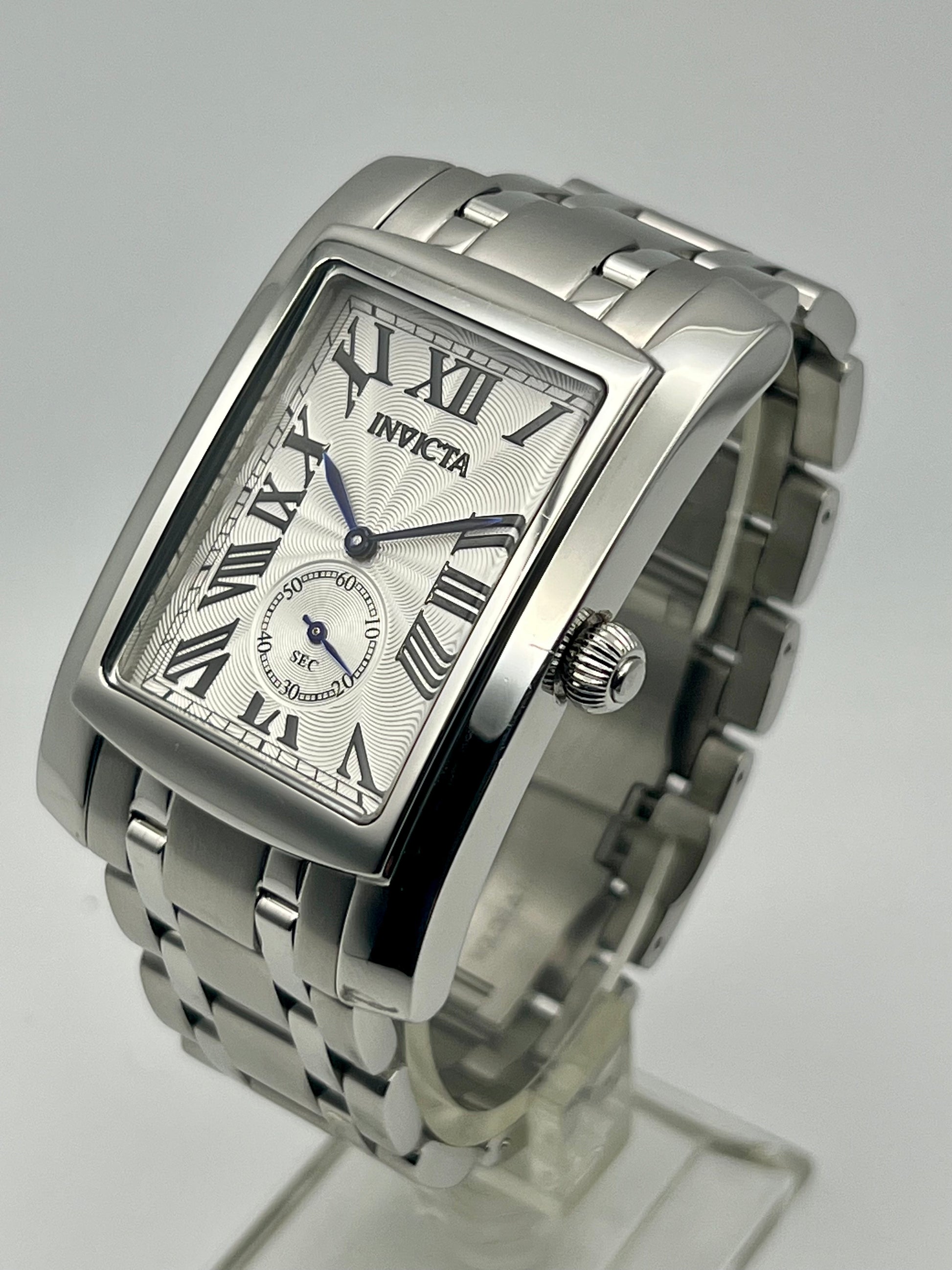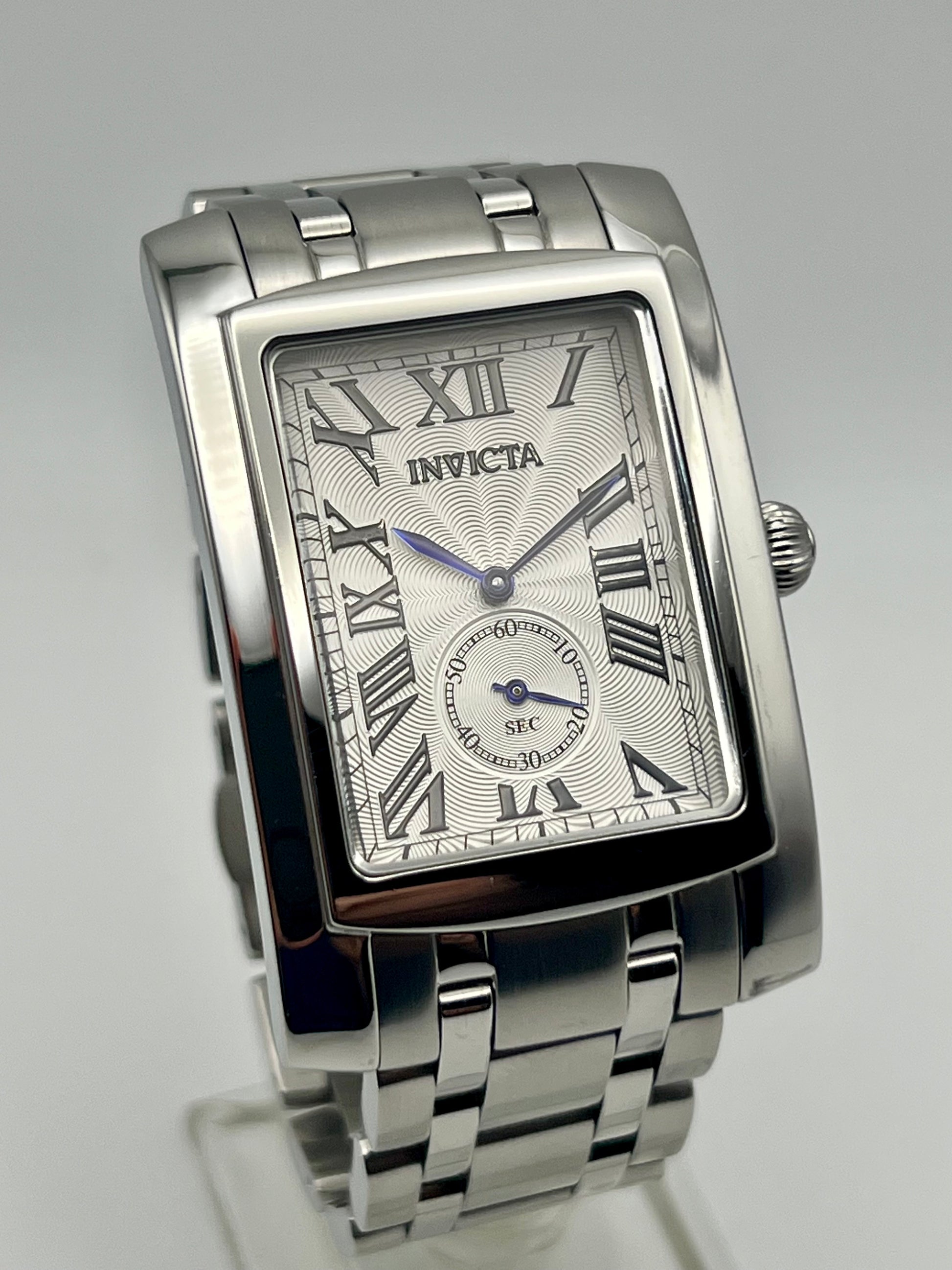 This Invicta Cuadro 14697 has been revived with an upgrade to the 6-Jewel Ronda 1069 quartz movement, replacing the original non-jewel stock movement that became irreparable. The Ronda 1069 movement offers improved accuracy, longevity, and durability, ensuring a more reliable performance compared to the stock movement Invicta uses.