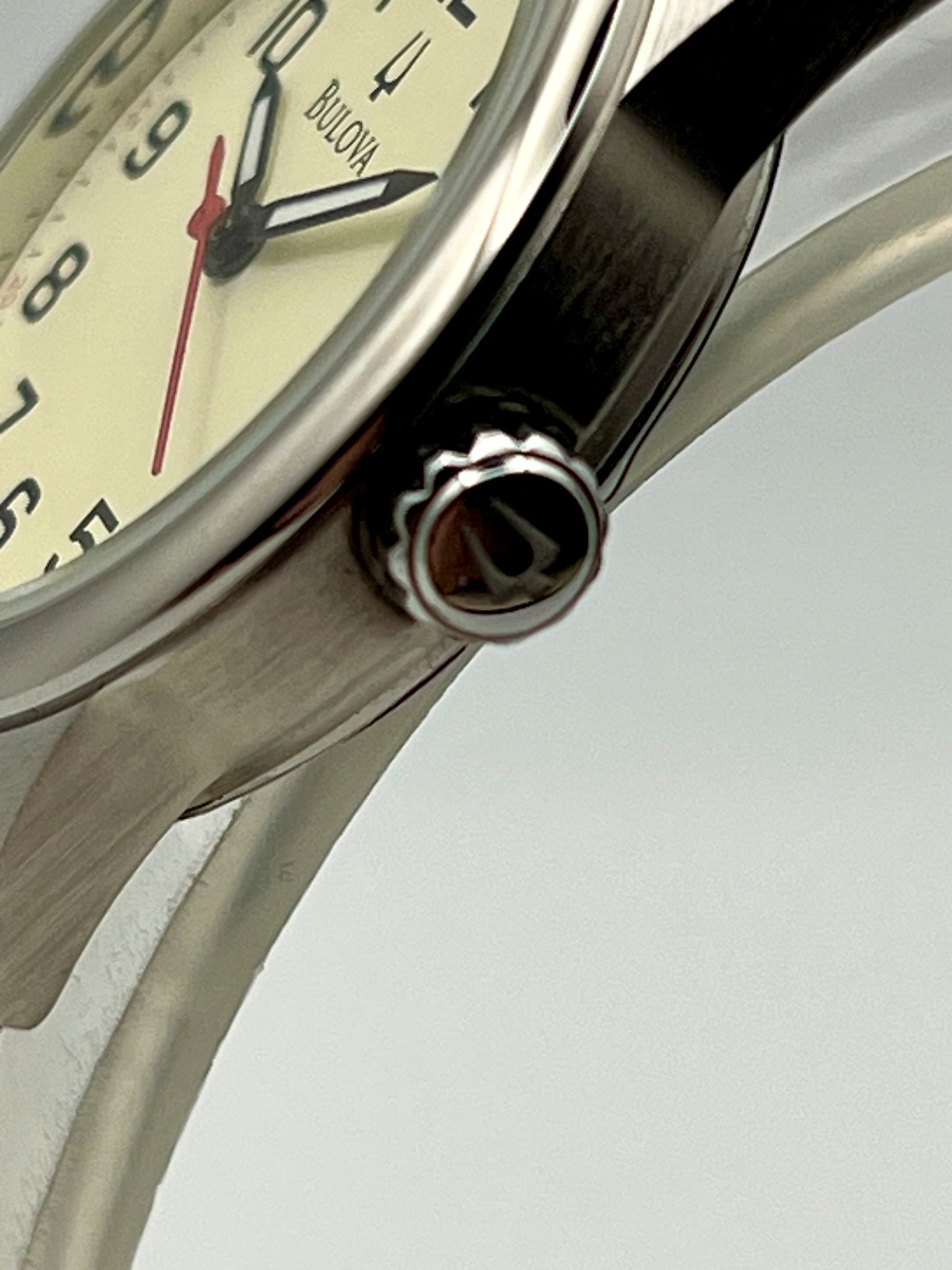 A modern classic, this Bulova Ladies Field Watch (2020) features a clean beige dial with bold Arabic numerals and a durable sapphire crystal. Powered by a reliable quartz movement, it comes complete with box, papers, tags, original protective film, and a fresh battery. Mint condition throughout.
