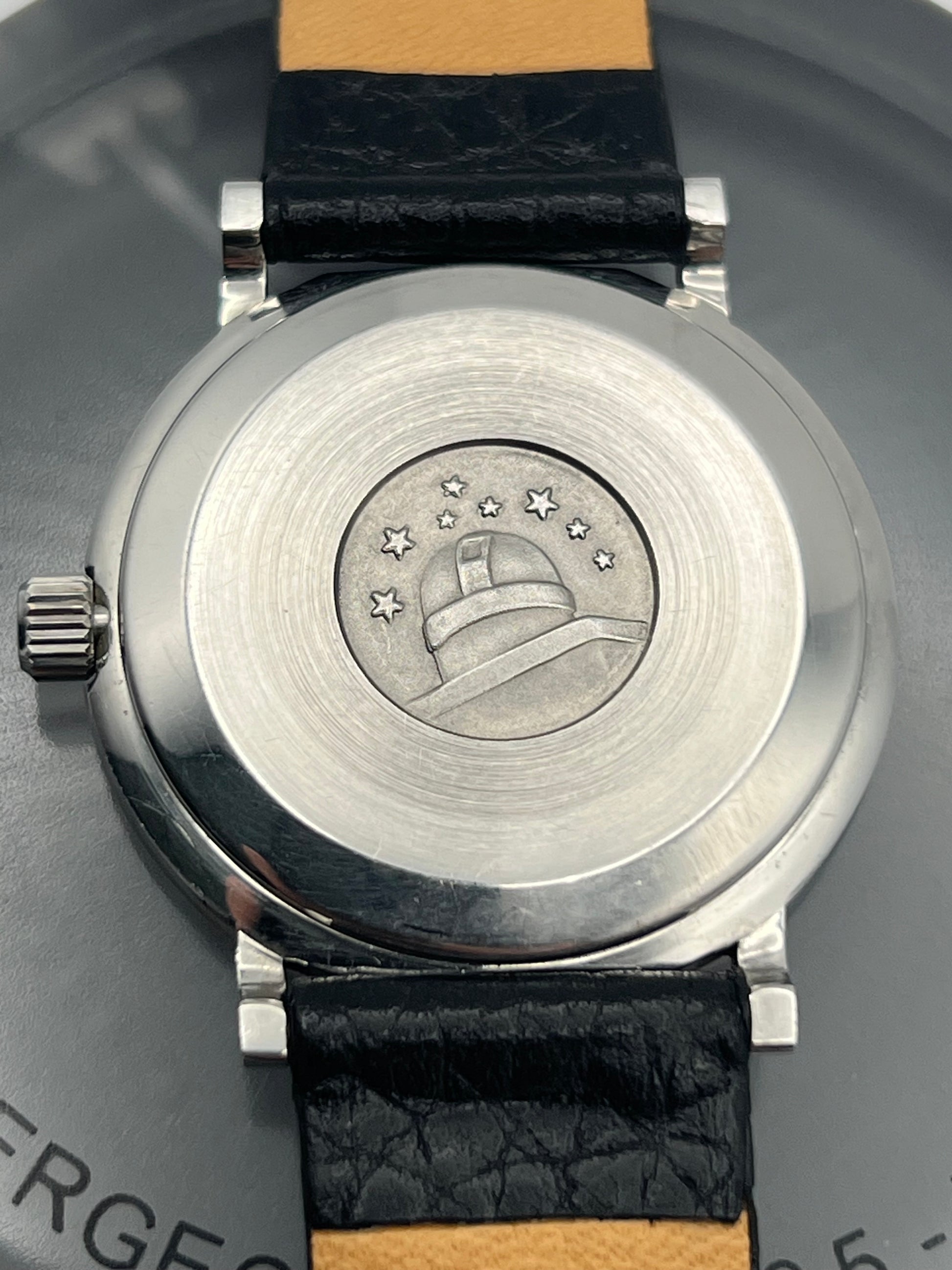 One of the standout features of this watch is the Constellation observatory logo on the caseback, which remains in remarkably crisp and unpolished condition. The engraved stars and observatory detail are sharp and well defined, something collectors truly appreciate and rarely find preserved so well after nearly five decades.